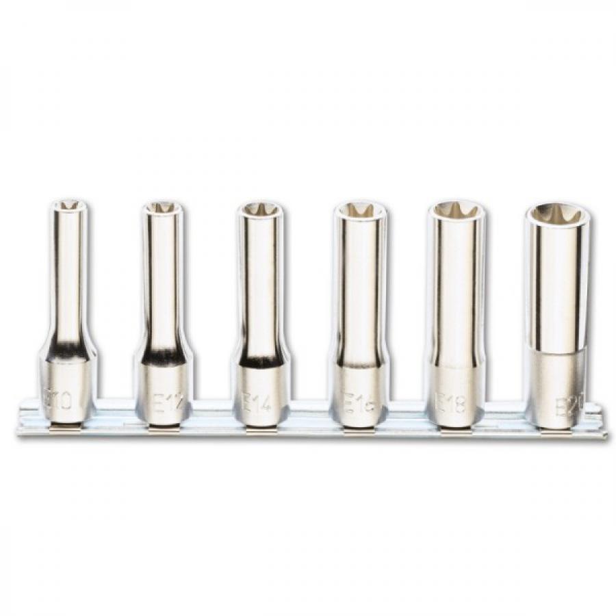 Набор из 6 головок торцевых дюймовых для винтов с профилем Torx® удлиненная серия (арт. 920FTX/L) с держателем E10-E12-E14 E16-E18-E20 |
